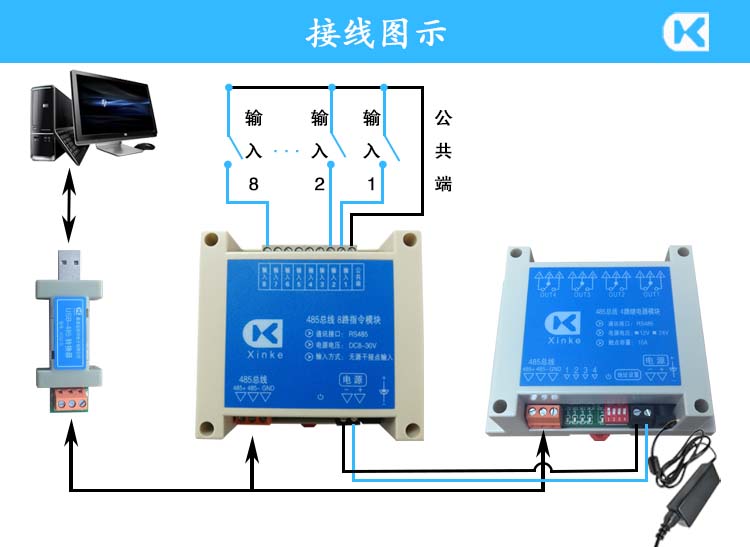 網絡/RS232串口/RS485總線4/8/24/32路無源開關量輸入檢測指令板